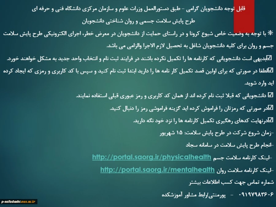 طرح پایش سلامت جسمی و روان شناختی دانشجویان1400